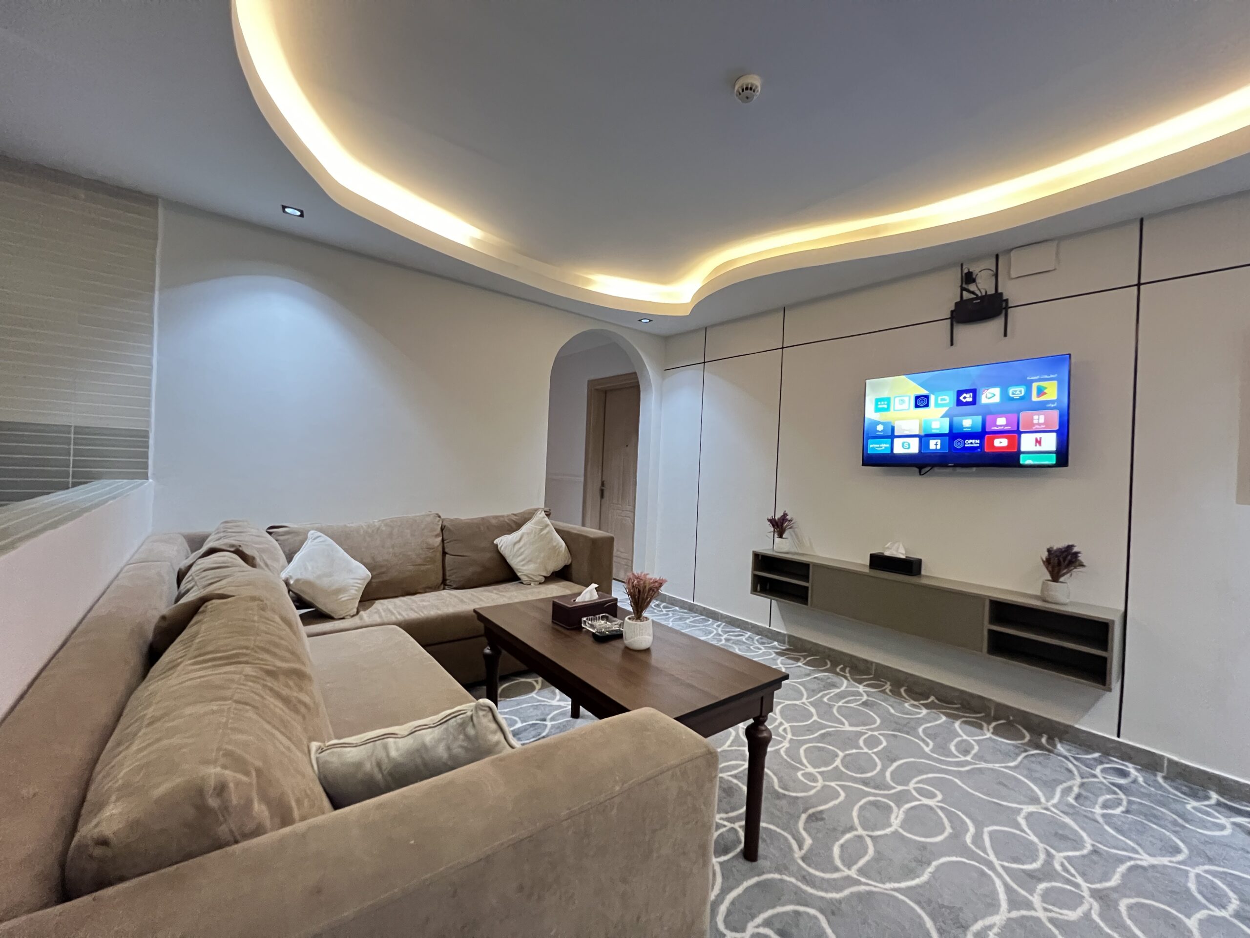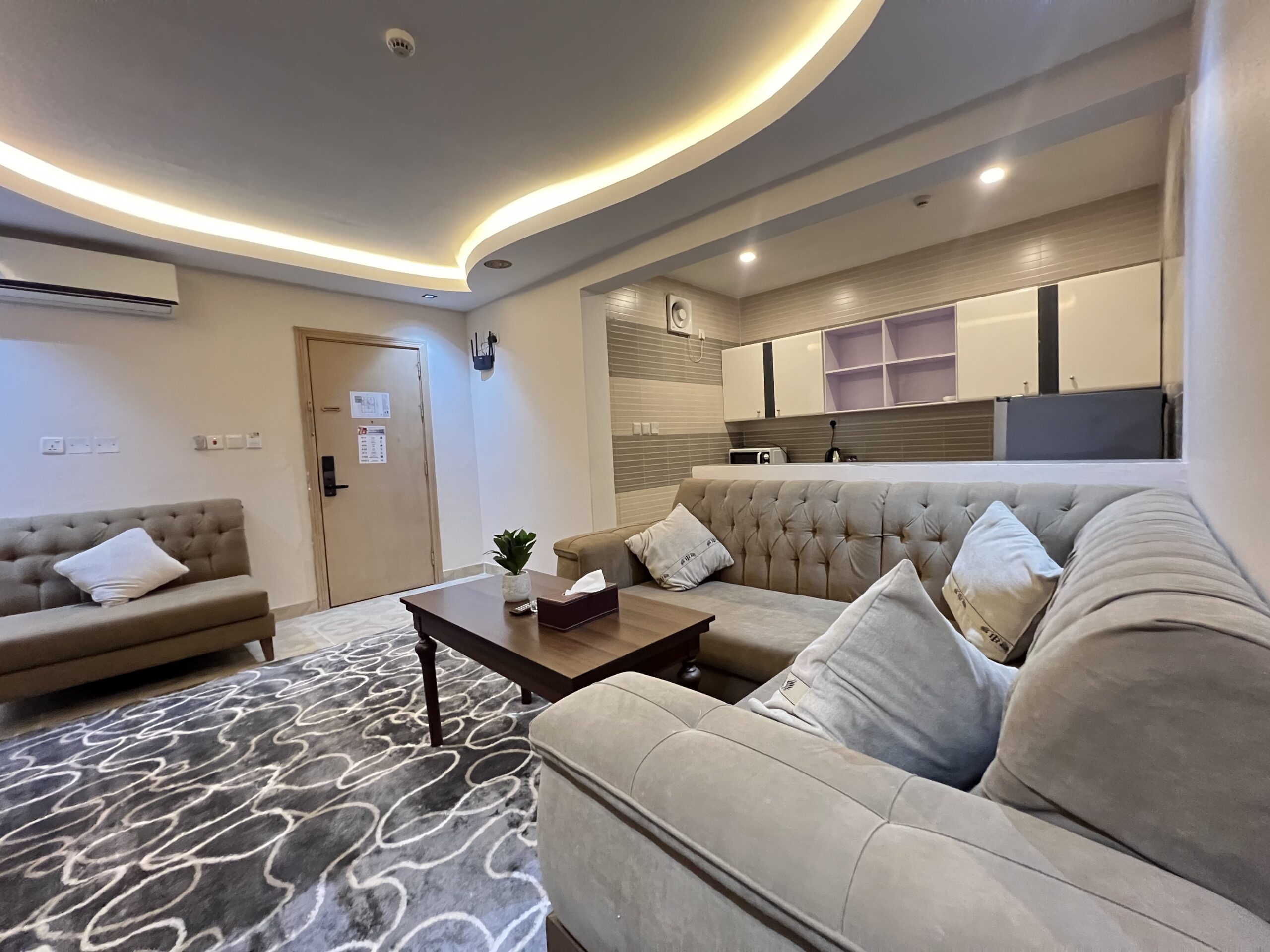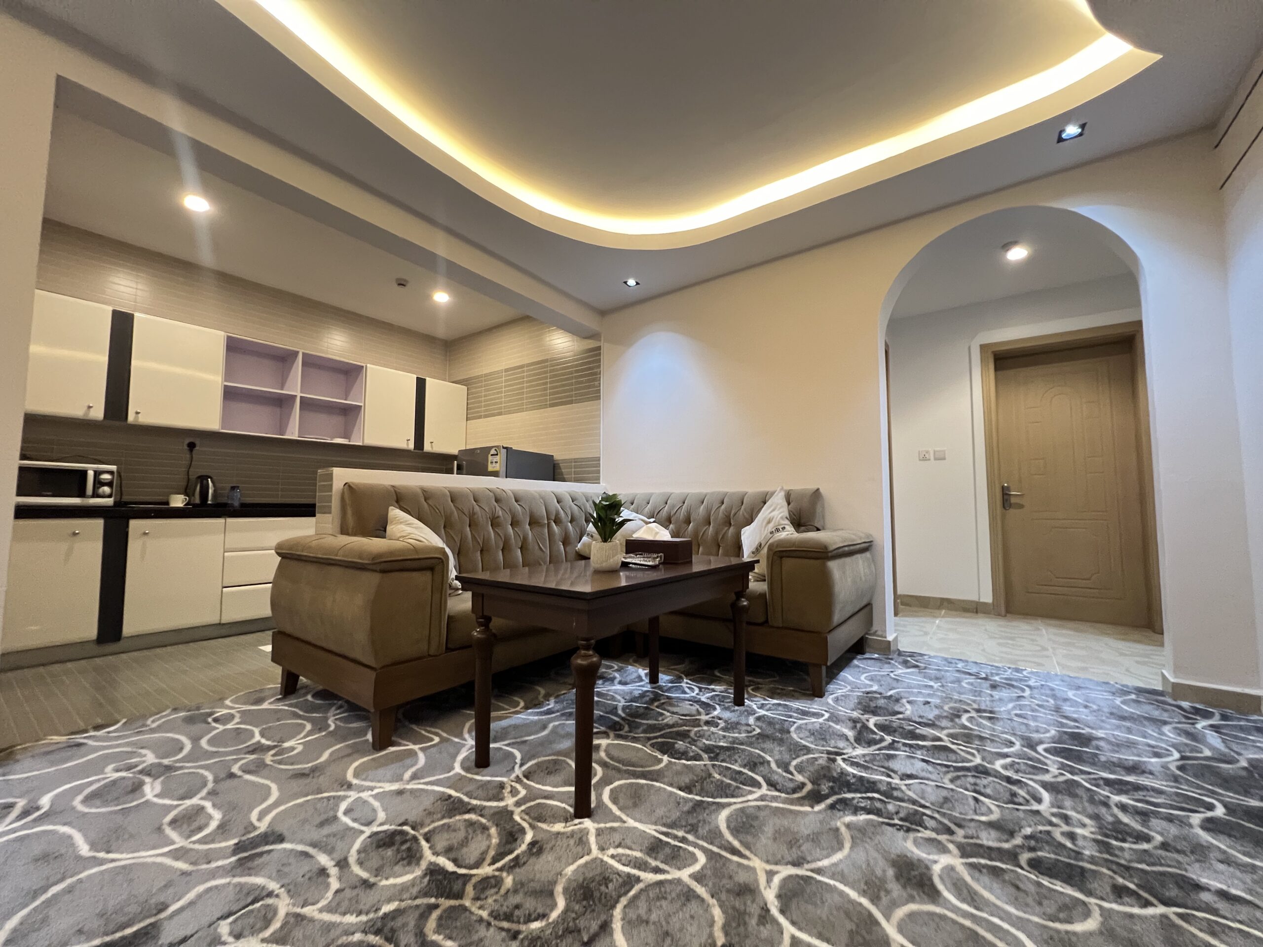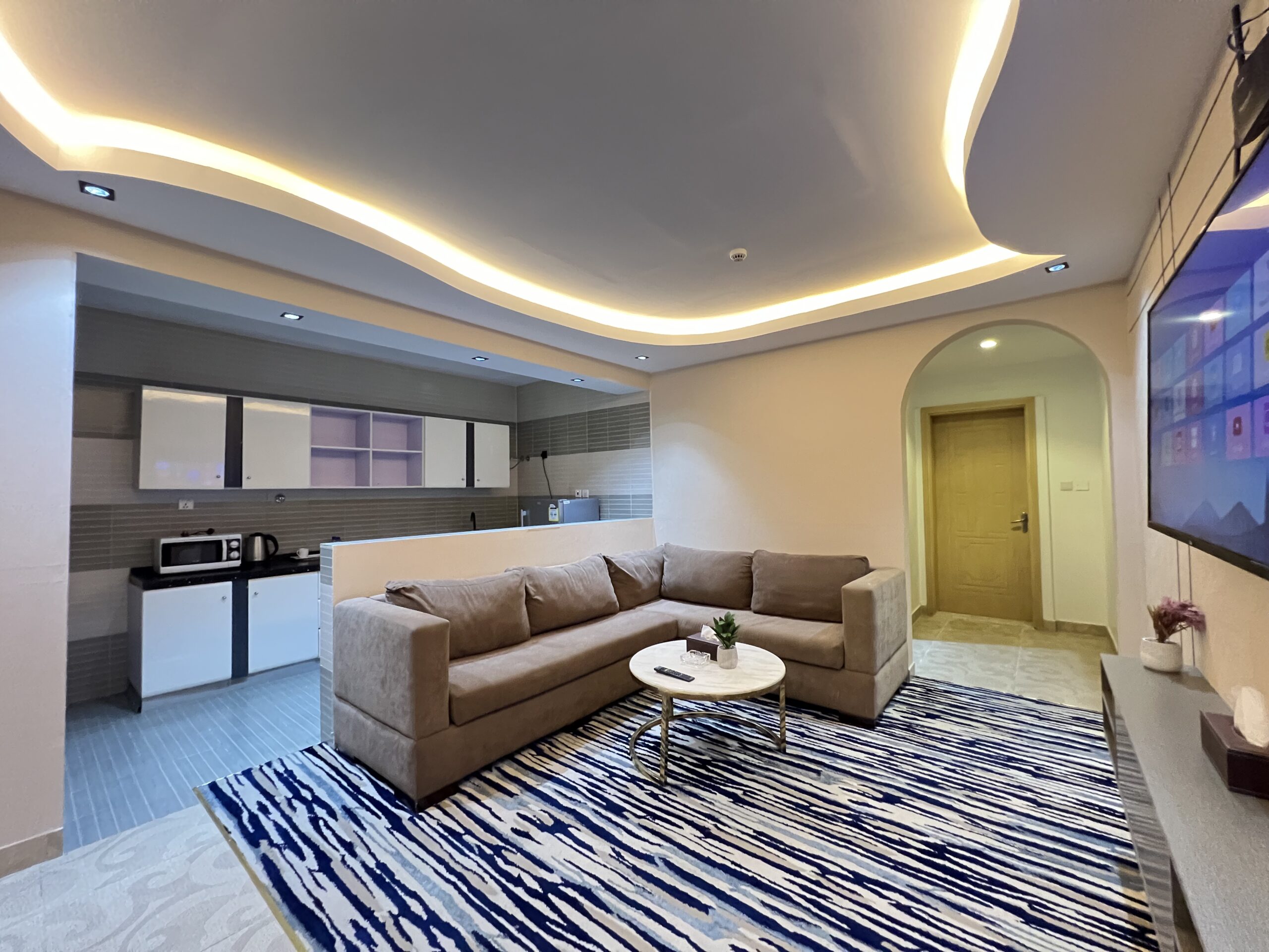 جناح مكون من غرفة بحمام وركن قهوة منفصلة غرفتين وصالة ومطبخ وحمام