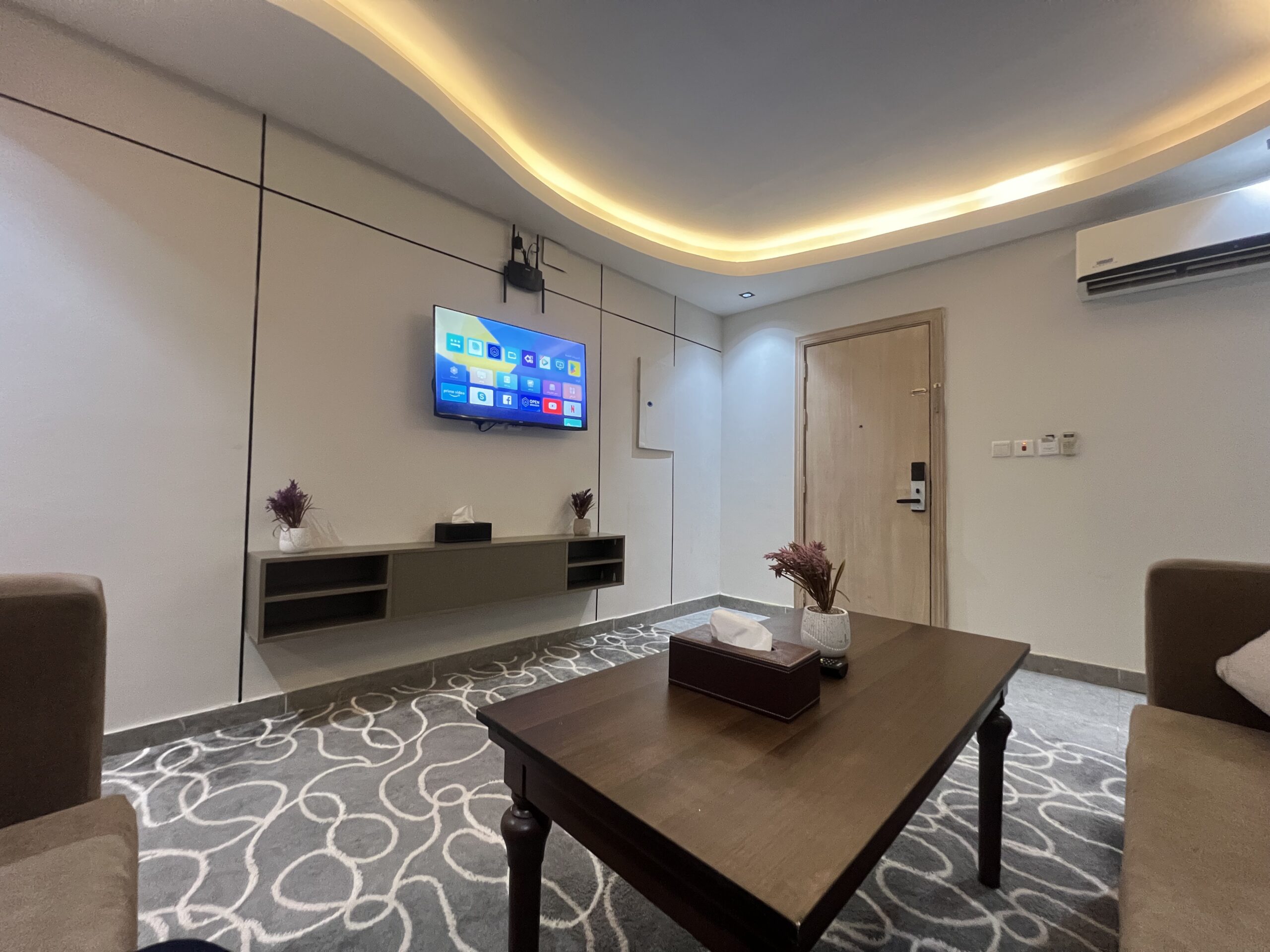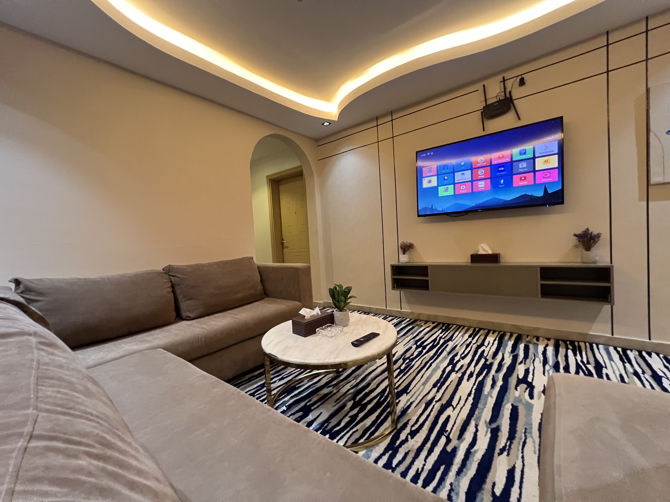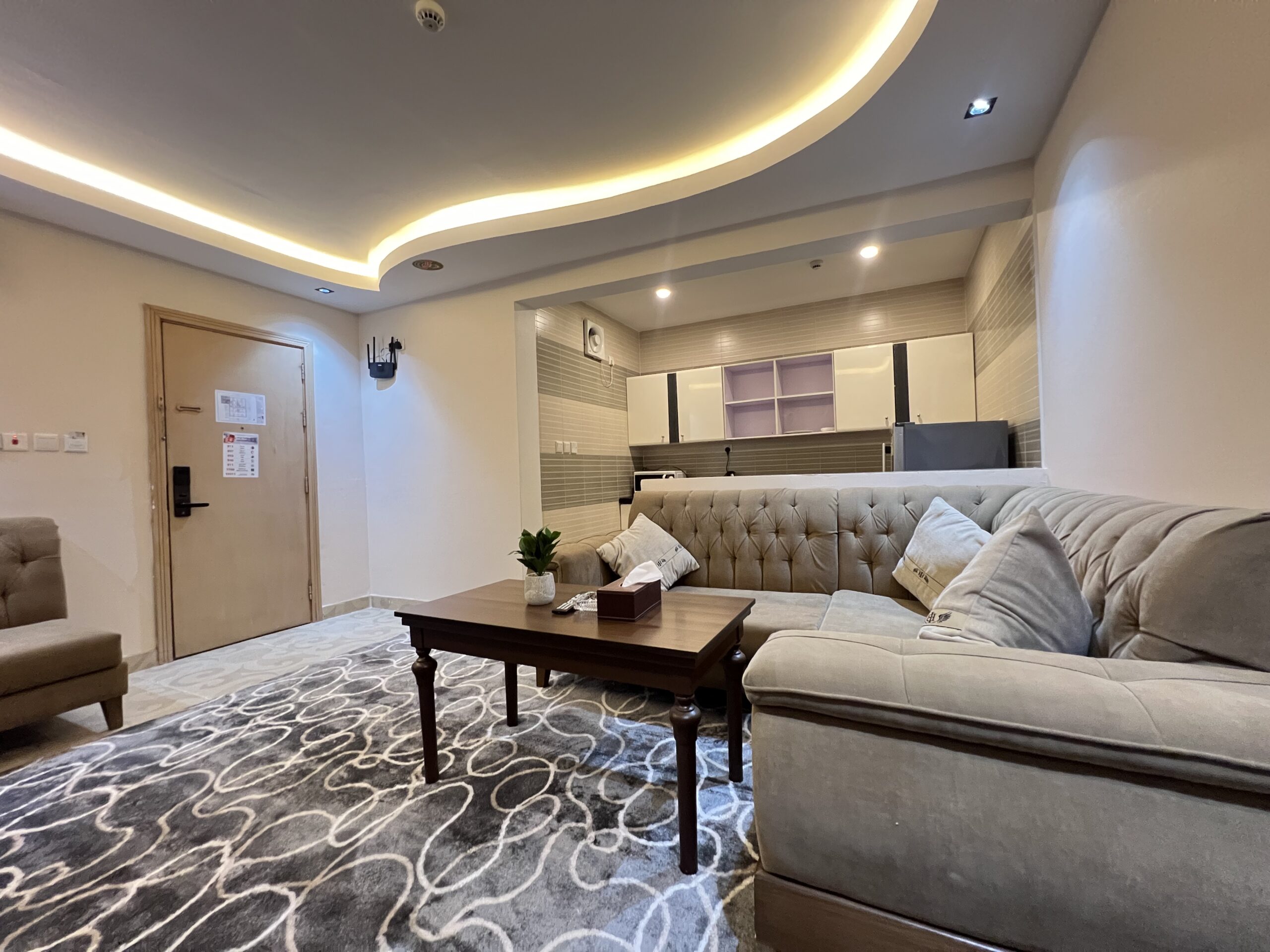 جناح مكون من غرفة بحمام وركن قهوة منفصلة غرفتين وصالة ومطبخ وحمام