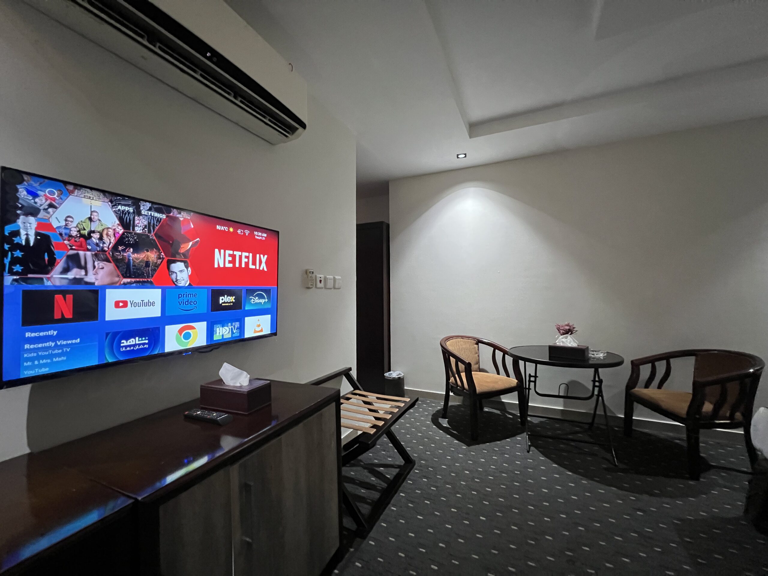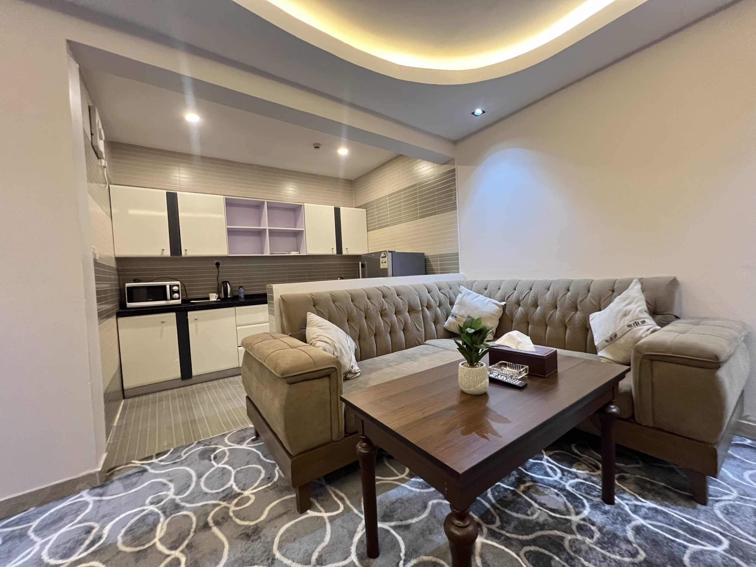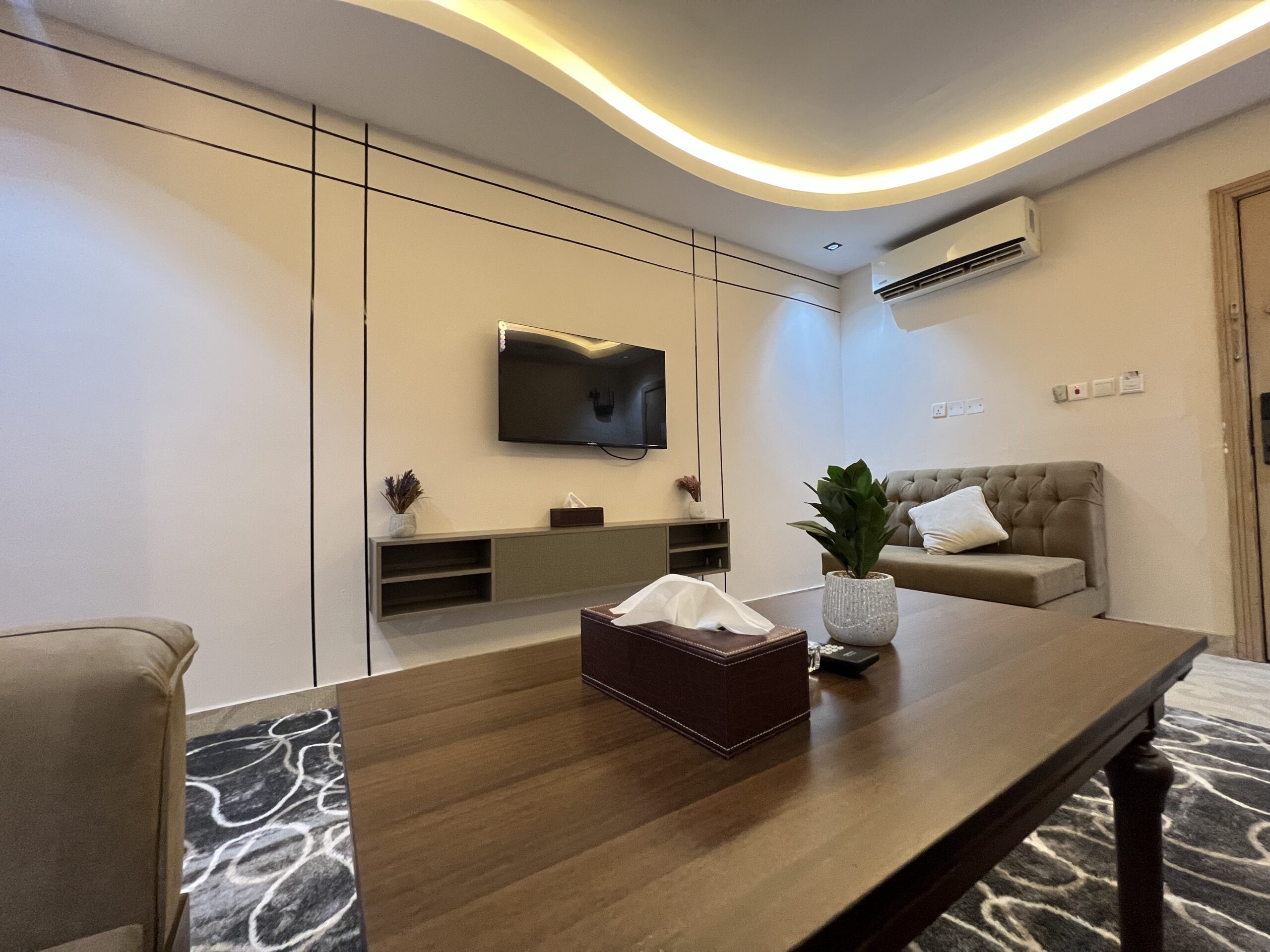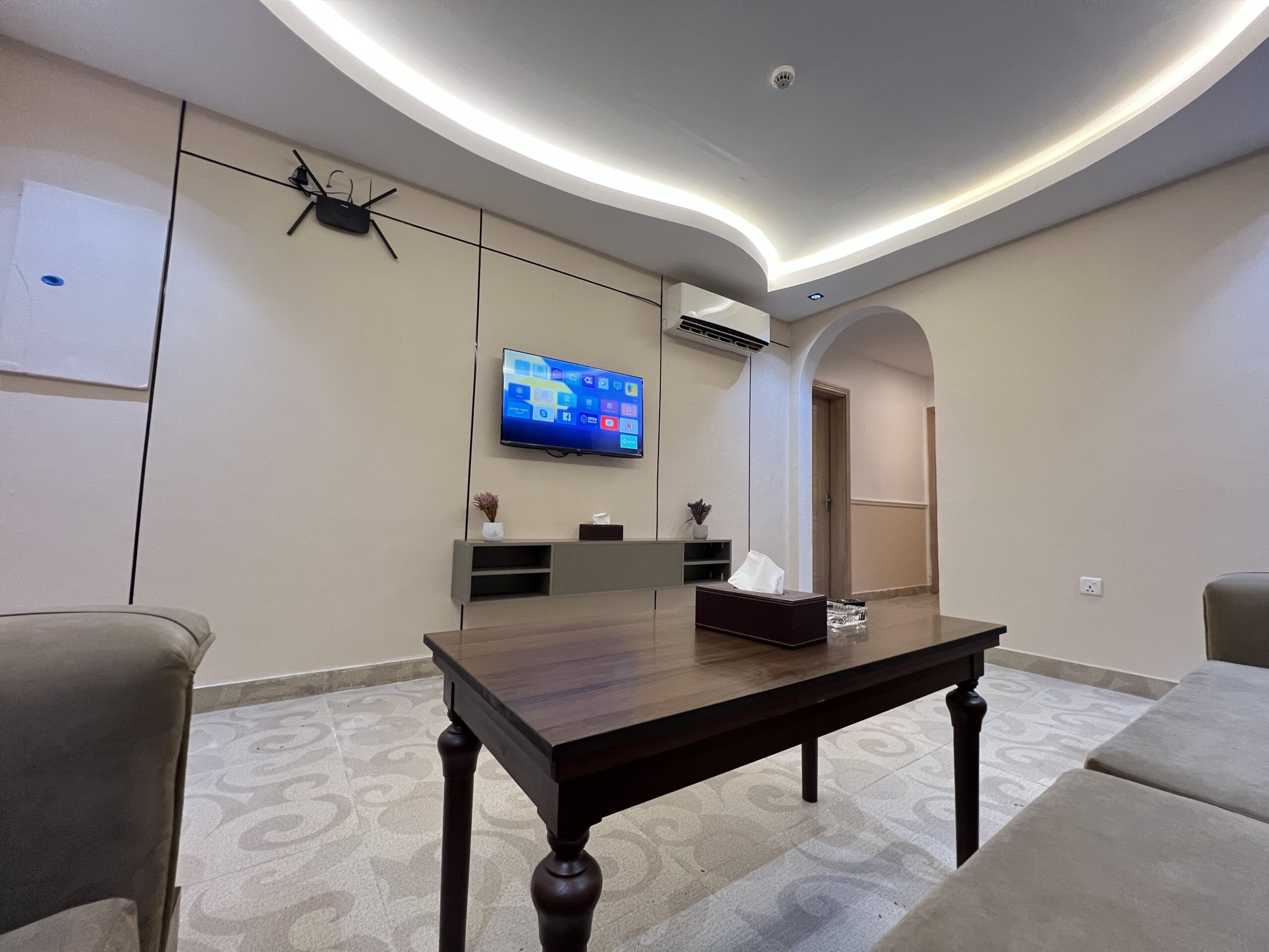 جناح مكون من غرفة بحمام وركن قهوة منفصلة غرفتين وصالة ومطبخ وحمام